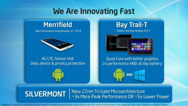 It's clear that Intel was very much aping Apple (AAPL 1.50%) with its next-generation Merrifield smartphone product. The design is a dual-core, likely with the same GPU block from Imagination Technologies (NASDAQOTH: IGNMF) that Apple is using in its A7 chip, although probably clocked higher. These all point to Intel trying to do a chip very much in the spirit of what Apple did with A7. Unfortunately, Intel is very much shooting behind the duck here, as the world moved on to larger phablets that support higher-power envelopes and larger die sizes.