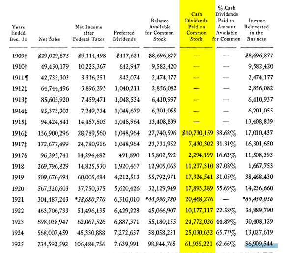 I recently came across General Motors' (GM 1.91%) 1925 annual report, which offers a good example of how differently companies use to treat dividends.