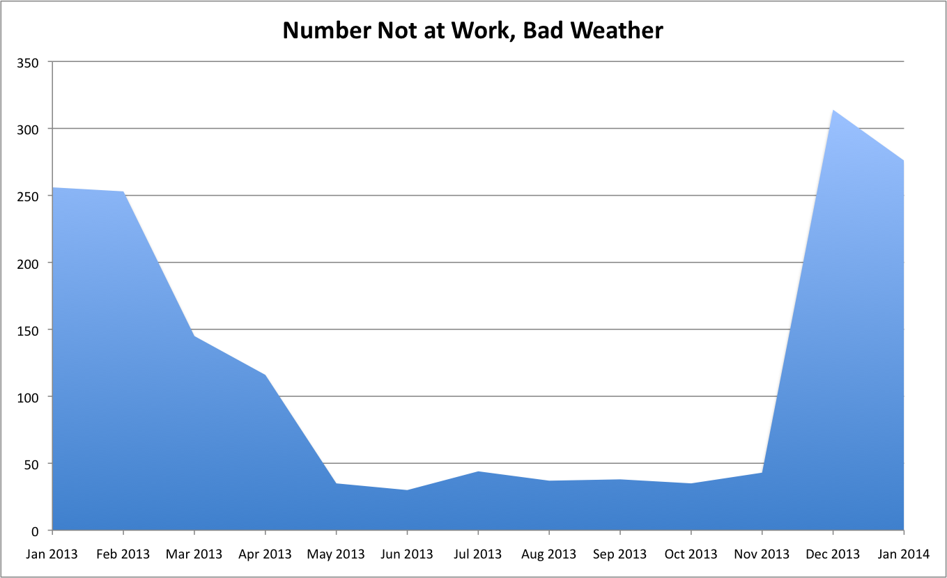 But heck, even the Bureau of Labor Statistics says a lot of people were affected, too, and decided not to go to work because of the weather.