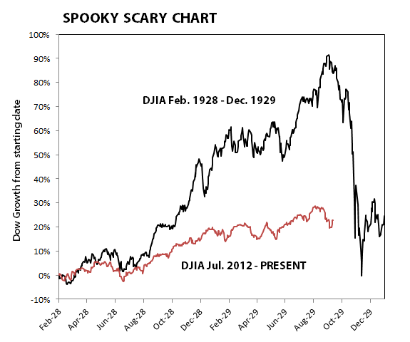 Do 1929 and 2014 look similar? Sure, on one particular graph, if you tweak the variables long enough. Is there a direct relationship between 1929 and 2014 when it comes to market movements? No. It doesn't matter if you're talking about stocks, commodities, demographics, or just two random sets of data that happen to be paired up on the same chart -- the Internet is full of articles that claim to find patterns in data where none exist.