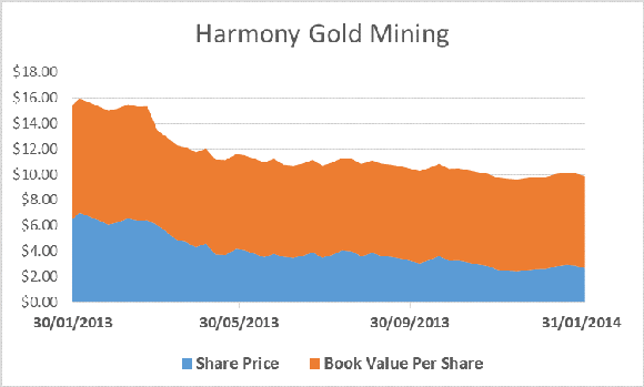 What's more, if you'd purchased Harmony Gold, another miner trading at an astonishingly low valuation, you would be sorely disappointed.