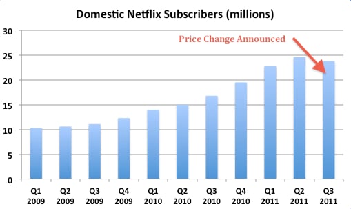 In the quarters that followed, the price of Netflix's stock sank by 75%, and its subscriber growth came to a screeching halt.