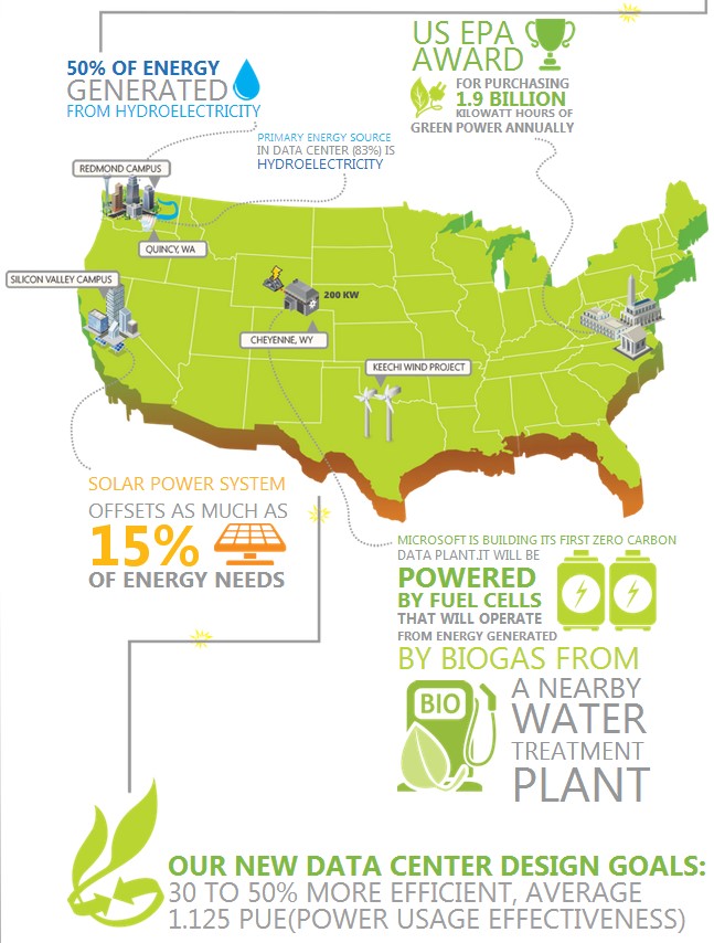 At 1,935,551,000 kWh of annual green power usage, Microsoft Corporation's investments in biomass, small-scale hydro, solar, and wind power are significant stakes . Here's an infographic explaining some of Microsoft Corporation's green energy initiatives .