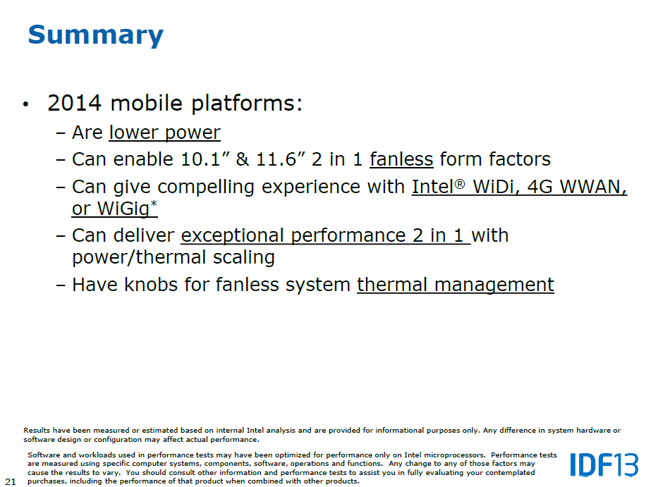 At the Intel Developer Forum, Intel talked about how its next-generation Broadwell processor would enable fanless Ultrabook/convertible designs: