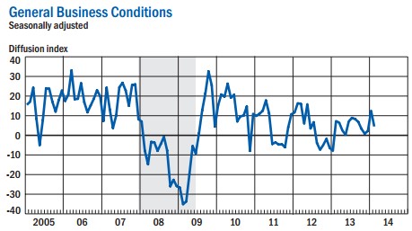 Comprised of surveys from around 100 New York executives, The Empire State Manufacturing Survey attempts to determine whether certain components of manufacturing have experienced growth (positive number) or contraction (negative number). Investors watch New York manufacturing (and other regions, as well) as a possible signal of larger economic upswings or downturns.