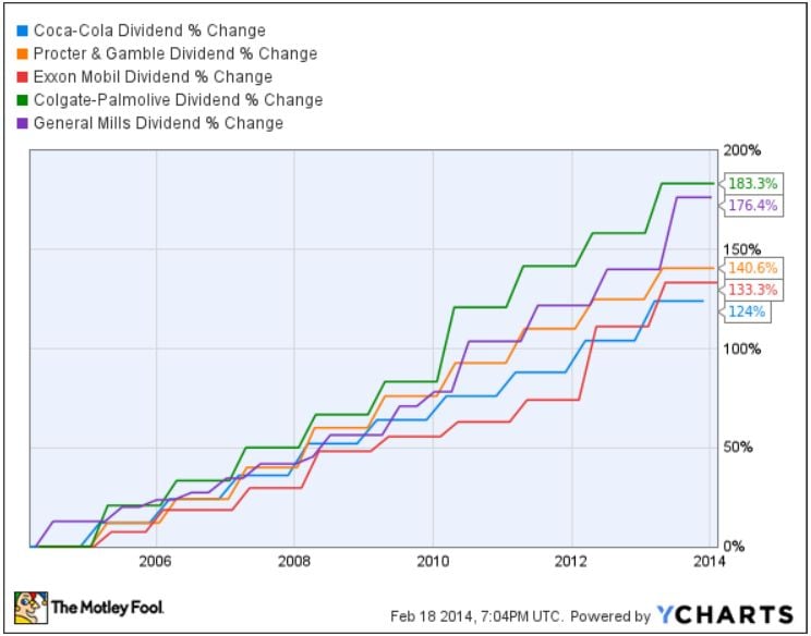 Coca-Cola, Procter & Gamble, ExxonMobil, Colgate-Palmolive, and General Mills are part of an exclusive group of companies that have sustained their dividend payments for more than 100 years. This feat speaks wonders about the fundamental strength of these companies and their ability to successfully go through all kind of economic scenarios while rewarding shareholders with consistent capital distributions.