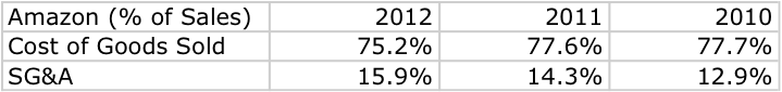 Based on the table above, Groupon has benefited from its selling, general, and administrative expenses falling from 155.7% of sales in 2010 to 64.9% in 2012. In part, this has been offset by a rising cost of goods sold for the business, which rose from 13.7% of sales to 30.8%.