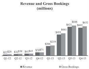 King reported fourth-quarter gross bookings of $632 million, an increase of more than 2,000% from the first quarter.But, more than three-quarters of the bookings came from Candy Crush Saga. The game remains popular with about 93 million daily active users, but King admitted in its F-1 filing that the bookings drop between the third and fourth quarters was due to a decline in Candy Crush's performance. According to the company: "Gross bookings in the quarter ended December 31, 2013 slightly declined compared to the quarter ended September 30, 2013. The decline was driven by a decrease in Candy Crush Saga gross bookings, which was mostly offset by an increase in gross bookings across all of our other games."