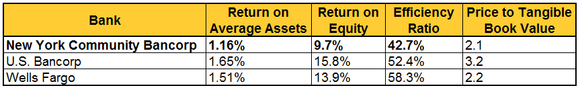 It leads its peers in its efficiency ratio -- which essentially measures the cost of each dollar of revenue -- and it also delivers solid returns: