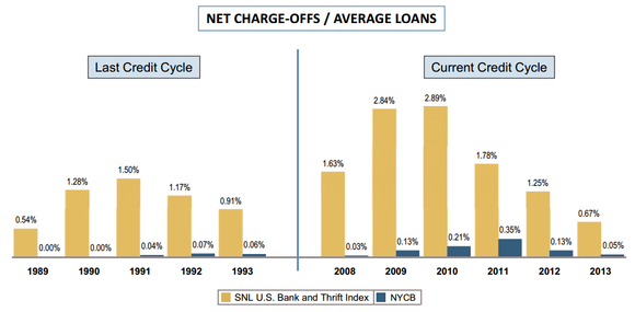 Yet through both the most recent financial crisis and the previous savings & loan crisis in the late 1980s and early 1990s, New York Community Bancorp has been resoundingly resilient: