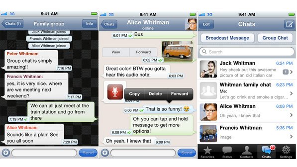WeChat, which is free, offers more features than WhatsApp, which costs $0.99 per year.