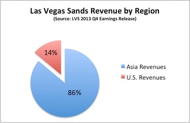 Other casino companies are meeting in the coming months as well. MGM Resorts International (MGM +0.31%) and Wynn Resorts (WYNN 1.30%) are both getting serious about their talks with Osaka officials, and they plan for formal talks early this year. MGM and Wynn have both said that if allowed, they will happily invest the estimated $4.8 billion needed to build a casino resort in the area. These are two casino companies that know the value of big investments in Asia. Wynn reaped $1,119.9 million from its Macau operations in the fourth quarter of 2013, 74% of the company's total revenue for the quarter. Total revenue for the company is up 24.6% over the same quarter in 2012. Likewise, MGM Resorts noted in its third quarter 2013 earnings release that it received $808.4 million from its China operations, 34% of the quarter's total revenue.
