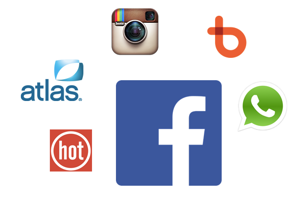 Facebook surrounded by a handful of its acquired companies. Source: Company websites.