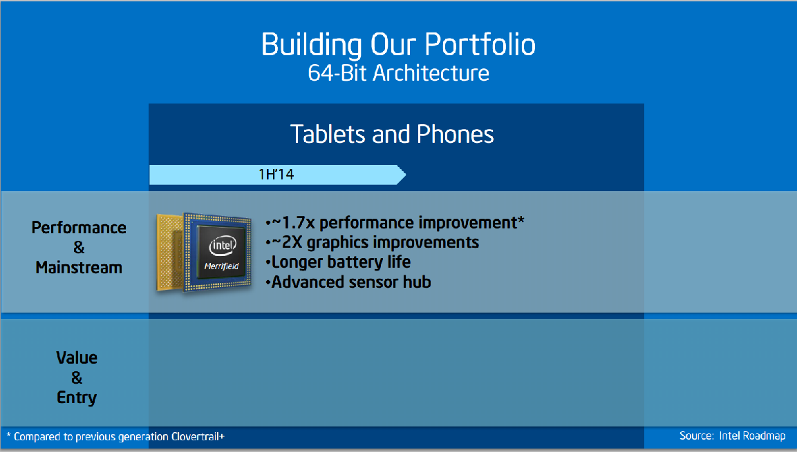 Many smartphone launches happen at Mobile World Congress, the biggest event of the year for mobile devices for both silicon vendors and device vendors alike. It will be very important for Intel shareholders -- and potential shareholders -- to watch what sorts of announcements come out of Mobile World from Intel's partners regarding Merrifield. From what was touted at the investor meeting -- 1.7 times the CPU performance of Clover Trail+, plus two times the graphics performance -- it should be a fairly compelling part for smaller phones, i.e., non-phablets, assuming the XMM 7160 modem is as good as it was billed at the investor meeting.