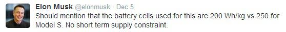 The fact that Tesla's CEO felt the need to specify that the supply will be safe in the short term might indicate that he foresees a high demand, or that maybe he wants to make sure no one starts questioning the long delivery time of the Model S once the stationary battery packs begin shipping.