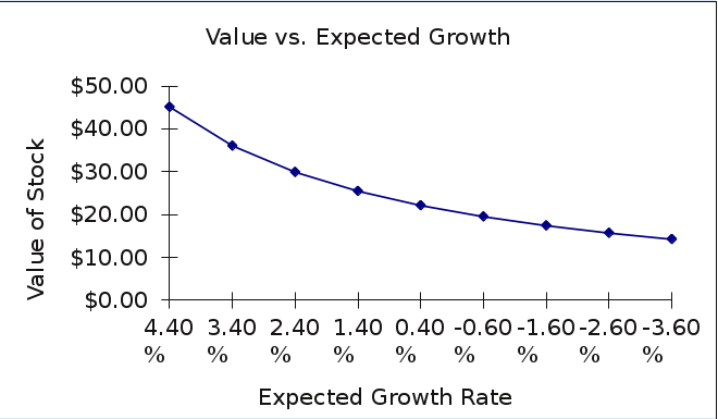 Let's apply the time-honored Gordon Growth Model of dividend-based valuation to AT&T. The model makes a few important assumptions: the underlying business has matured and should grow both earnings and dividends at a steady state for the foreseeable future, and the company pays as much as it can in dividends.