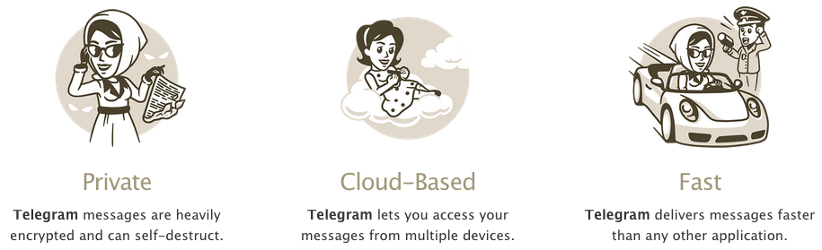 Some of the key features Telegram boasts. Image source: Telegram's website.
