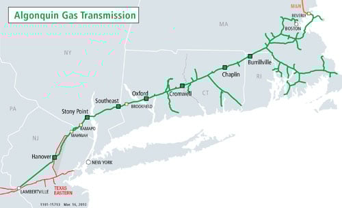 The Algonquin Gas Transmission pipeline is owned and operated by Spectra Energy Partners (SEP +0.00%), a master limited partnership formed by Spectra Energy (SE +0.00%). It can transport up to 2.6 Bcf/d through its 1,127 miles of pipeline.