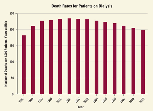 Sadly, one in 10 American adults (about 20 million people) suffers from some level of chronic kidney disease, according to the Centers for Disease Control and Prevention. Kidney disease incidence more than doubled in the 65+ population from 2000 to 2008. And, the prevalence rate of ESRD in the U.S. population has grown from less than 300 out of every 1 million people in 1980 to almost 1,750 of every 1 million people in 2009.