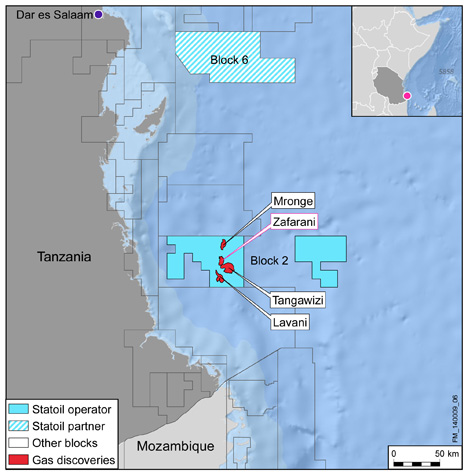 Some might recognize this area as being just north of Mozambique, a country in which Italy's Eni (E +2.43%) discovered the massive Mamba gas field, estimated to contain 60 trillion cubic feet of natural gas in place. While Statoil's gas fields in Block-2 are nowhere near that size, this is still a significant amount of gas and could create a very strong opportunity for Statoil.