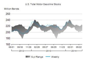 Meanwhile, gasoline inventories dropped 1.6 million barrels (0.7%) for the week after falling 1.2% the week before. Demand for motor gasoline over the last four-week period is down a seasonally adjusted 1.5% from the year-ago period. In the last year, supplies have expanded a slight 0.5%.