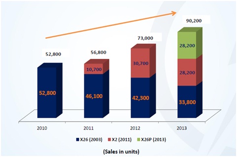 TASER's upgrades have had a history of taking sales forward, and U.S. police departments are lapping up the new TASER X26P, and TASER X2. As many as 17 police departments across the country booked orders for these products in the fourth quarter. The X26P, which was introduced in 2013, in particular has received an excellent response as the company sold 10,444 units in the fourth quarter alone. This is a quarterly sales record for any CEW product yet. The niche weapon maker is planning to phase out its X26, which was launched in 2003, by the end of 2014.