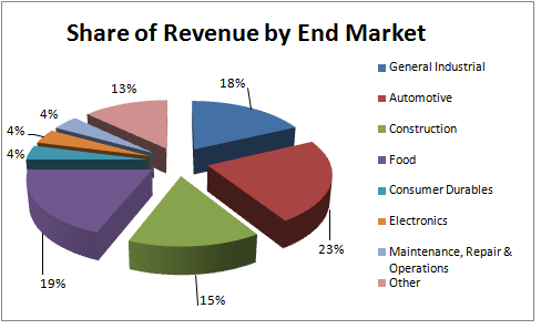 The particular strength in automotive original equipment manufacturers (revenue up 12.4%) will be well received by Foolish investors in a company like Johnson Controls, which has strong automotive and construction exposure. Johnson Controls is favorably exposed to some positive-looking sectors of the economy in 2014, and just like Illinois Tool Works, its managing to achieve growth in excess if its industry.
