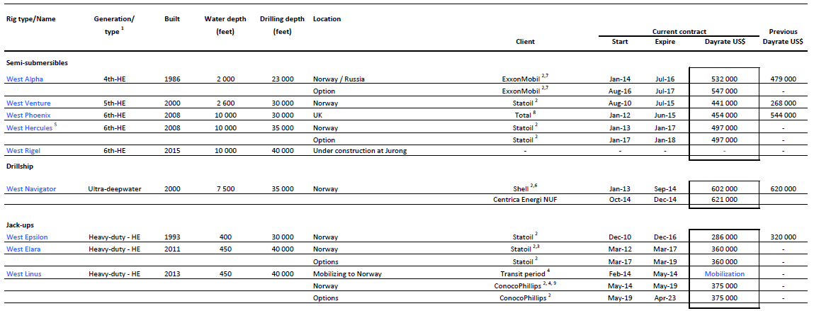 This situation changes somewhat in 2015, but there is still nothing for investors to worry about. The company's quarterly report states that 73% of its fleet is covered under firm contracts in 2015, as shown in its fleet status report:
