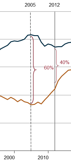 In 2005, 60% of U.S. oil consumption was imported. Since 2007, however, the U.S. switched into a net exporter. Today, more than 60% of U.S. oil consumption is produced domestically. Reducing consumption of foreign oil has already saved the U.S. billions. At a daily production rate of 8 million barrels of oil, the U.S. is the third most productive country in the world. The U.S. Department of Energy expects that rate to rise to 9.6 million barrels per day by 2019, a 22% increase from current levels. Consumption of foreign oil relative to domestic oil continues to shrink favorably, as illustrated below by the U.S. government.