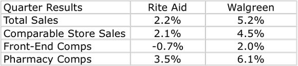 Based on the data provided by Rite Aid, it's safe to say that the company experienced a reasonable quarter but nothing that it should boast about. Yes, revenue is rising. But when you see a larger rival like Walgreen posting stronger growth, it's difficult to say smaller, underperforming rival Rite Aid is a strong prospect.