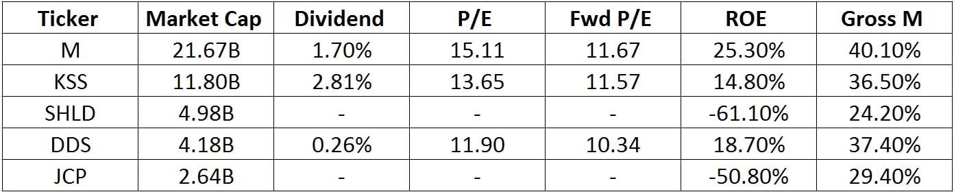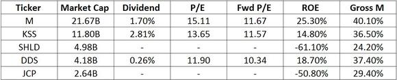Still, when looking at valuation ratios like P/E and forward P/E, Macy's is only marginally more expensive than its peers.