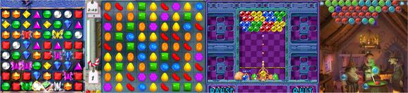 L to R: Bejeweled vs. Candy Crush Saga, Puzzle Bobble vs. Bubble Witch Saga. (Source: Industry websites, author's edits)