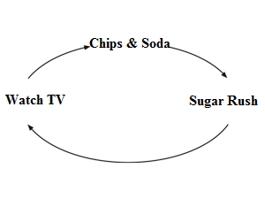 The cue could be that you are sitting down to watch television. The routine is to pop open a Pepsi, a bag of Fritos, and a can of bean dip. You do this automatically, without thinking, when you watch television. Your subconscious mind takes you through the routine because it gets you to the reward: an enjoyable snack or a quick energy boost.