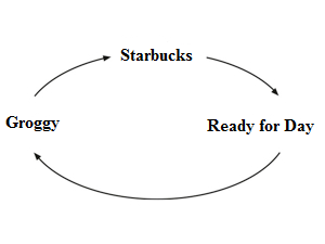 Just like the family in Duhigg's fast-food example, Starbucks drinkers may not intend to become habitual coffee drinkers. The cue to get coffee may be morning grogginess on the way to work. Since Starbucks has locations just about everywhere, you stop by Starbucks to get a quick pick-me-up. After drinking Starbucks coffee, you are ready for the workday. Your brain likes changing from groggy to ready-for-day, and it learns that Starbucks can get you from one to the other, so you develop the habit of going to Starbucks whenever you are groggy in the morning.