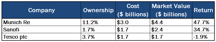 While the types of the investments of Berkshire Hathaway makes are relatively well known, it turns out they don't only have to be in the U.S. to pique the consideration of Buffett. Of the 15 largest common stock stakes Berkshire Hathaway holds, three are headquartered outside the U.S.: