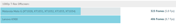 On a per core basis, the old 32-nanometer Atom absolutely demolishes the Snapdragon 400 as far as single-threaded CPU performance goes -- and it is single-threaded performance that matters in most mobile applications (since most apps can't use more than 1-2 cores). In graphics performance using the popular GFXBench 3.0, the Lenovo K900 (which sports the same SoC as the upcoming ZenFone 5) does exceptionally well against the Moto G, nearly doubling the latter's performance: