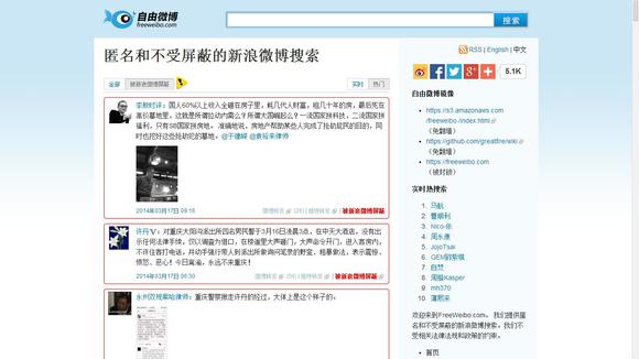 The site "Free Weibo" attempts to bypass censors and publish censored posts. (Source: Author's screenshot)