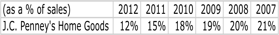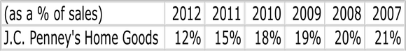 Admittedly, the operations do appear to have fallen off a cliff starting in 2011, but Johnson did not assume his role at the company until November of that year. This further highlights the likelihood that the retailer's home-goods section was already at risk when Johnson took over; only he made it worse.