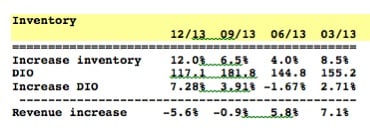 Inventory bloat is a retail red flag and the company says it will be blowing this excess out the doors over the next few months. Expect margins to stay down because jettisoning unwanted inventory means more markdowns.