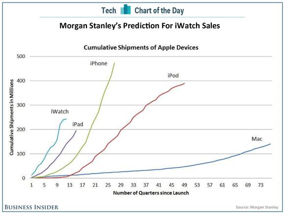 Morgan Stanley based this estimate on the fact that each new Apple product has sold faster than the product that came before it. The firm expects the iWatch to sell faster than the iPad, unless Apple suffers from supply constraints, which could bring revenue down to $12 billion. At first glance, the target may seem too high, but it is achievable and here's why.