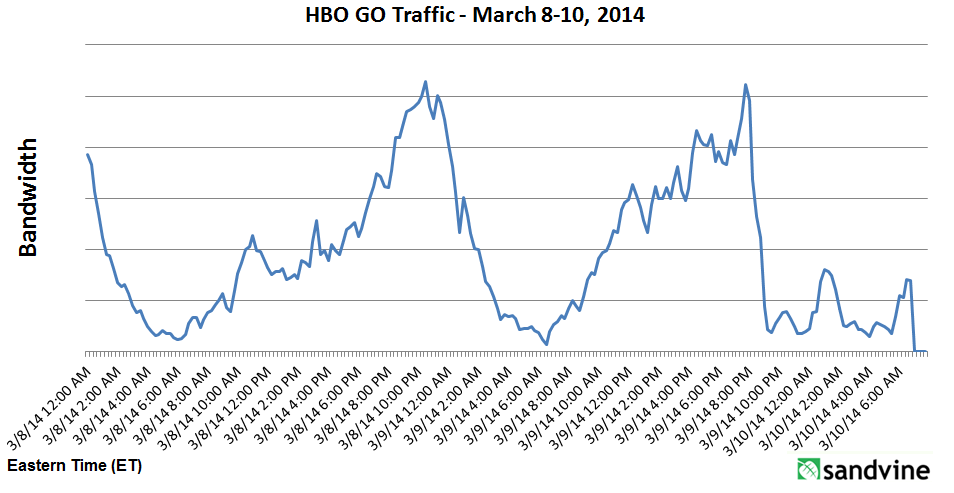 Researcher Sandvine plots the HBO Go that left millions of online viewers unable to watch the True Detective finale. Credit: Sandvine.