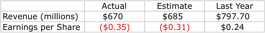 In terms of profit, the company's metrics were even worse. For the quarter, management reported earnings per share of -$0.90. This is significantly worse than the $0.01 loss reported in the year-ago quarter.