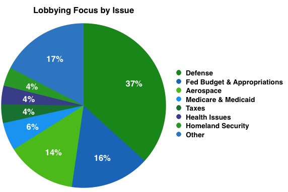 Now let's look at exactly what Northrop is focused on in Washington. Here's a look at the company's efforts broken out by the number of lobbying reports addressing specific issue codes: