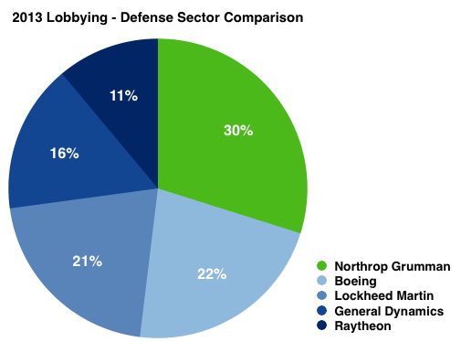 Today we are looking at Northrop Grumman (NOC 0.20%). The defense contractor spent more money lobbying in 2013 than any other publicly traded entity. Of the total $3.21 billion spent on lobbying last year, $20.59 million came from Northrop.