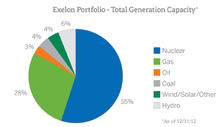 55% of its competitive electricity generation comes from nuclear power. Source: Exelon Corporation