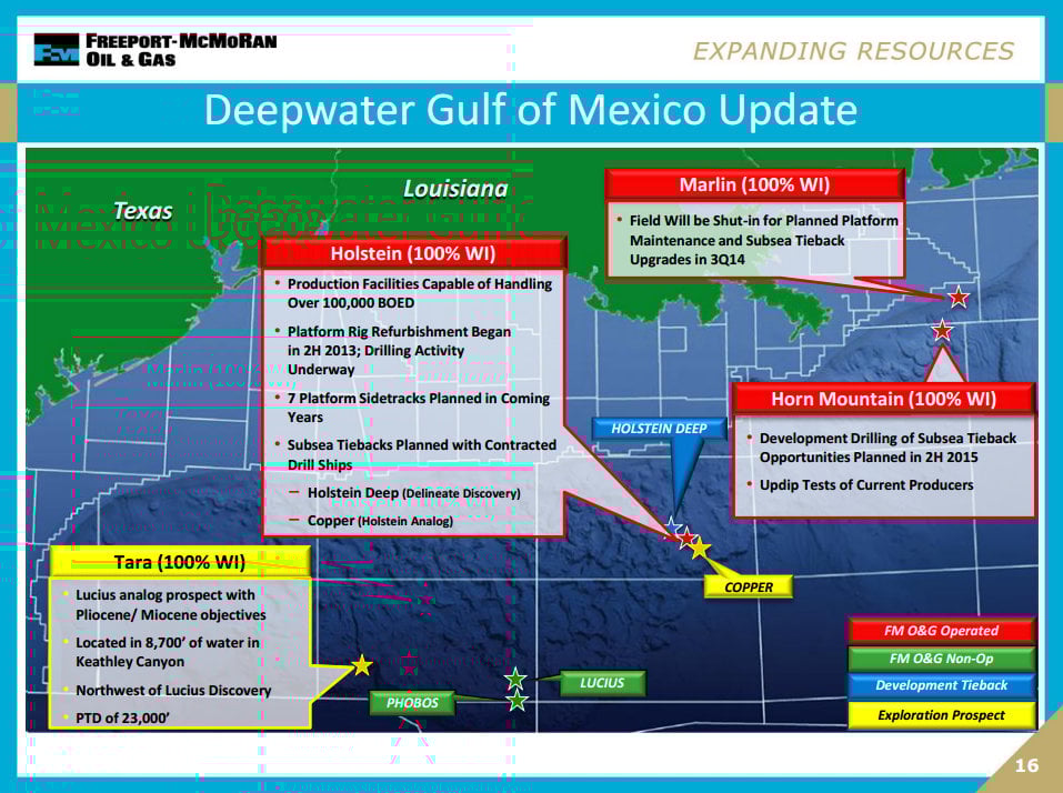 In addition to that the company's 100% operated Holstein platform is being refurbished to handle additional oil production. The company is looking to tie in future production at its Holstein Deep development as well as any future discoveries from its Copper exploration project as the following slide shows.