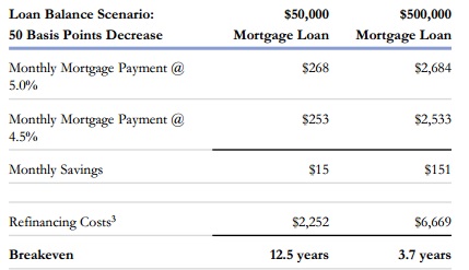 When borrowers refinance there are "refinancing costs". The question is: how many years will it take for the lower interest rate to "breakeven" with the cost of refinancing? As the chart above shows, the lower the loan balance, the longer the time period to breakeven. This creates a disincentive to refinance, an assumption that these loans will face less prepayment risk, and a more certain cash flow.