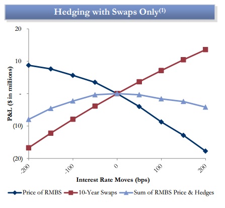 On the other hand, if rates go up this creates extension risk. Borrowers are less likely to refinance or prepay, so the lifetime of securities increase. REITs are then stuck holding securities worth less than it could readily find in the marketplace.