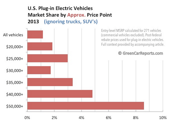 The Model S competes in the luxury segment, a much smaller playground than the economy or midsize segments. Tesla had about a 17% market share of passenger vehicles with a base price of $62,400, which is the lowest Model S price (after factoring in the federal tax credit). Seventeen percent of the top 2% of the U.S. luxury passenger car segment isn't too bad for its first full year in volume production.