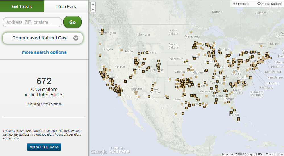 And here are the publicly accessible compressed natural gas fueling stations: